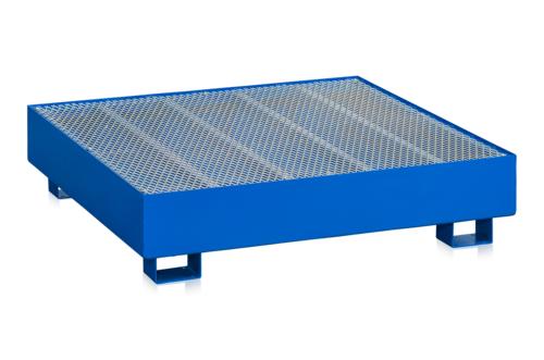 Fatpall för 4 fat. Uppsamlingskapacitet på 310 l. Med fatpallen hindrar du eventuellt läckage att rinna ut, då det samlas i pallen.