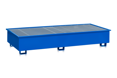 Robust uppsamlingskar för förvaring och tappning av kemikalier i IBC-behållare. Uppsamlingskaret bygger på en stabil rörkonstruktion med plåthölje och avställningsyta av galvaniserad sträckmetall. Uppsamlingskar i pulverlackerad RAL 5005, blå struktur. Produkten är rostskyddsbehandlad och därför även lämplig att användas i utomhusmiljö.