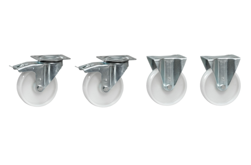 Nylonhjulen är slitstarka, tål hög belastning och lämnar inte efter sig några märken på underlaget.
