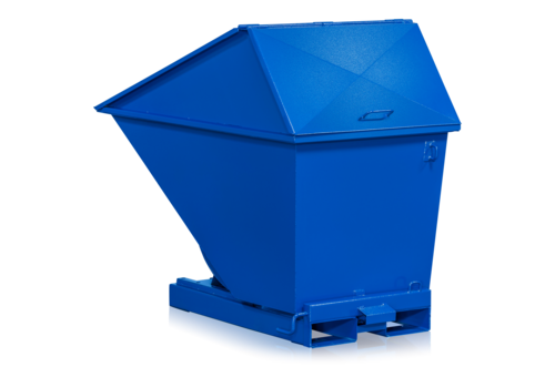 Stabil tippcontainer med lock för effektiv materialhantering och källsortering. Passar för till exempel emballage-, metall-, trä- och sopavfall. Den är tillverkad i 2 mm tjock och helsvetsad stålplåt. Ytan är pulverlackerad (blå RAL 5005) för en hållbar och stryktålig finish. C/c gaffelhål 395 mm och gaffelhål 225x95 mm.