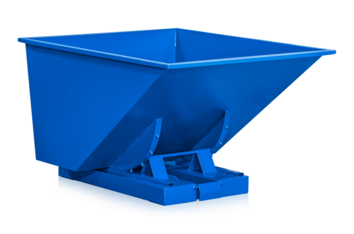 Stabil tippcontainer för effektiv materialhantering och källsortering. Passar för till exempel emballage-, metall-, trä- och sopavfall. Den är tillverkad helsvetsad stålplåt. Front, bakstycke och botten har 2,5 mm tjock plåt medan sidorna har 2 mm tjocklek. Ytan är pulverlackerad (blå RAL 5005) för en hållbar och stryktålig finish. C/c gaffelhål 395 mm och gaffelhål 225x95 mm.