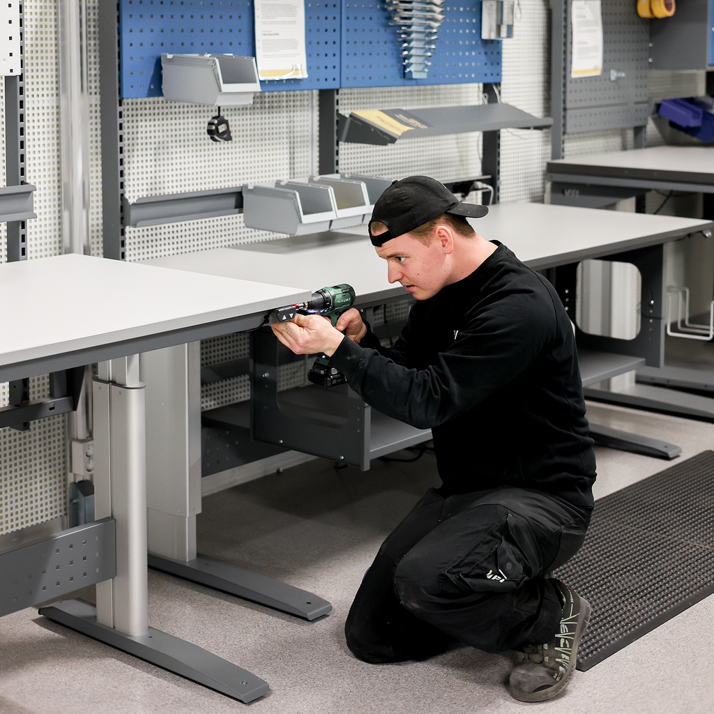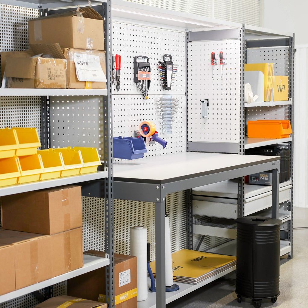 Kraftig och komplett arbetsbänk för monterings- och verkstadsarbete