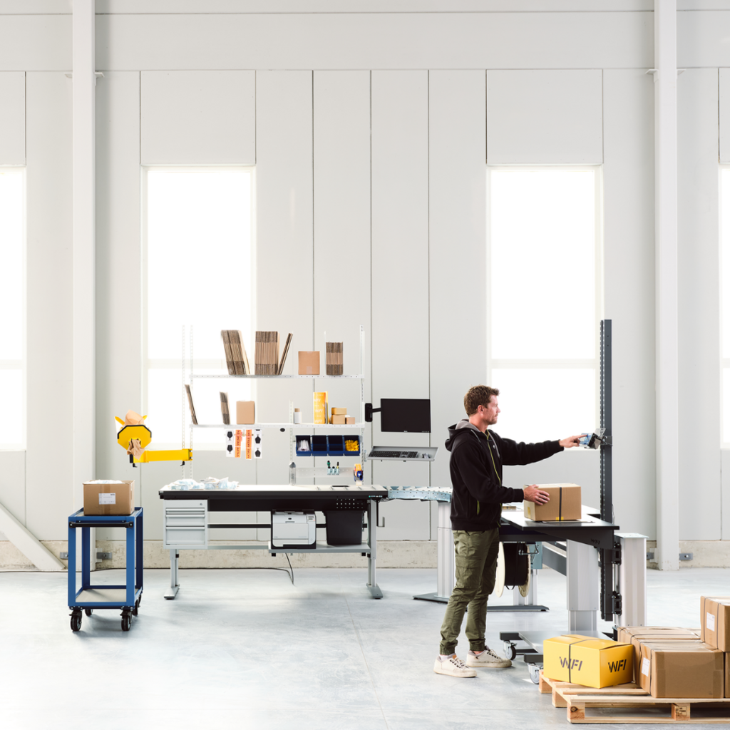 Ny konstruktion, fler integrerade tillbehör och smartare möjligheter. Vi presenterar ett helt nytt, och uppdaterat, sortiment av mobila arbetsstationer. Sortimentet består numera av fyra kombinationer som finns både som manuell eller motoriserad variant och givetvis går att bygga ut med fler tillbehör. De största nyheterna utöver den nya konstruktionen i sig är variant -03 med integrerad våg och display, samt variant -05 med ett batteripack som har en kapacitet på 2400W.