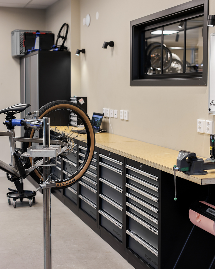 Under hösten besökte vi Isaberg Mountain Resort och BaseCamp som har södra Sveriges största Bike Park. Vilket givetvis kräver en ordentlig verkstad för allt från uthyrning av cyklar och utrustning till hjälp med reservdelar och tvätt. Vid bygget av deras nya cykelverkstad valde Isaberg garageinredning från vårt varumärke Homeworx, där förvaringsmöjligheter och funktion stod i fokus.