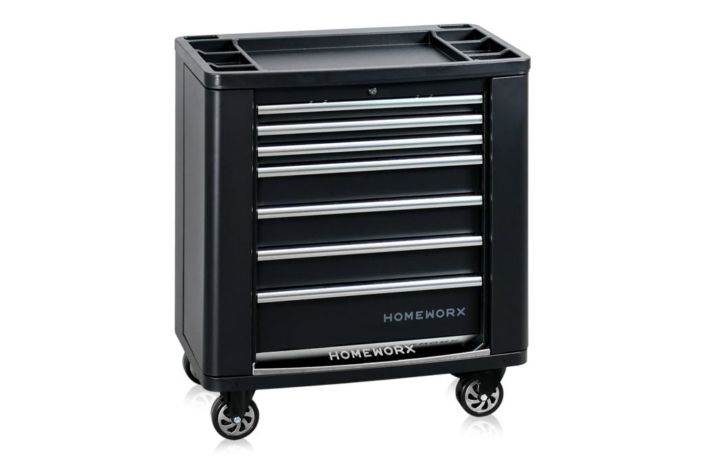Sist men inte minst har våra verktygsvagnar fått en ny och stilsäker design som matchar ännu bättre med vår garageinredning. Numera finns alla tre varianter, X1, X2 och X3, i helsvart RAL 9005. Här har vi X3 som är en riktigt robust vagn med sidodörrar för extra förvaring, X2 som har sju smidiga utdragbara lådor och X1 som har både lådor och dörrar. Samtliga skapar ett genomtänkt och flexibelt utrymme med gott om plats för både verktyg och utrustning.