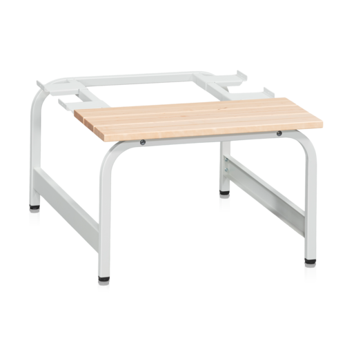 Robust bänkstativ till klädskåp med sittdel i björk.