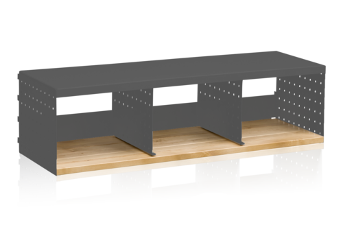 Klädfack som passar till våra vägghängda och fristående hyllsystem. Enkelt att höjdjustera. Klädfacket består utav ett massivt hyllplan i lackerad björk, samt topplan, raskant och sidoväggar i plåt. Sidoväggarna är perforerade. De tre fasta facken har innermåtten: bredd 300 mm, djup 320 mm och höjd 220 mm.