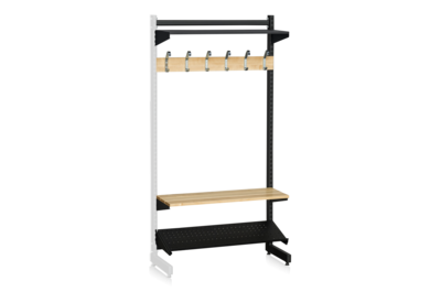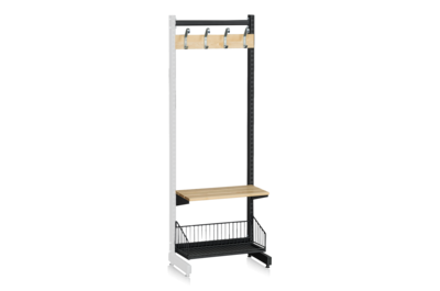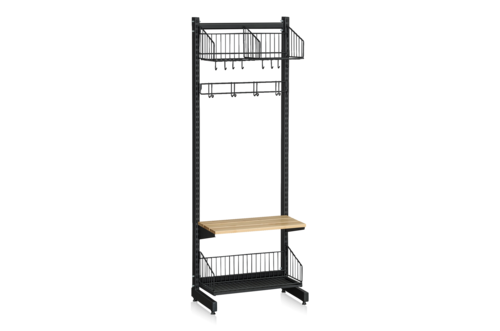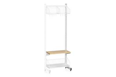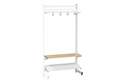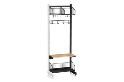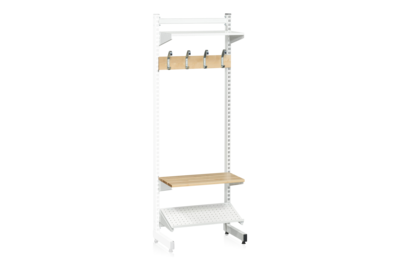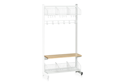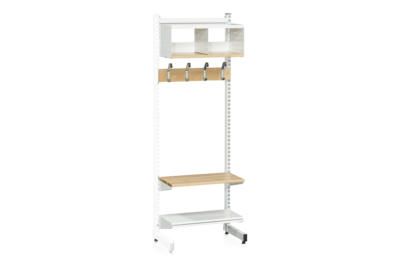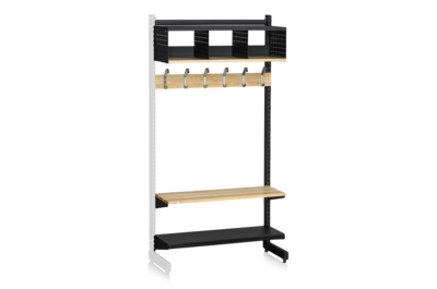 L-stativ (bassektion) till vårt golvstående förvaringssystem. Komplettera med tilläggssektioner, olika typer av hyllplan, perforerade paneler och krokar för att skapa en funktionell förvaringslösning för alla typer av miljöer, exempelvis kapprum.