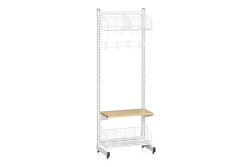 L-stativ (bassektion) till vårt golvstående förvaringssystem. Komplettera med tilläggssektioner, olika typer av hyllplan, perforerade paneler och krokar för att skapa en funktionell förvaringslösning för alla typer av miljöer, exempelvis kapprum.