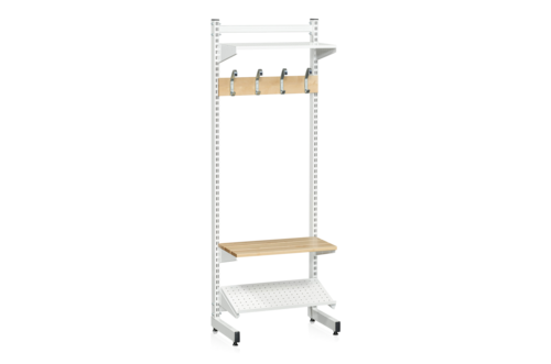 L-stativ (bassektion) till vårt golvstående förvaringssystem. Komplettera med tilläggssektioner, olika typer av hyllplan, perforerade paneler och krokar för att skapa en funktionell förvaringslösning för alla typer av miljöer, exempelvis kapprum.