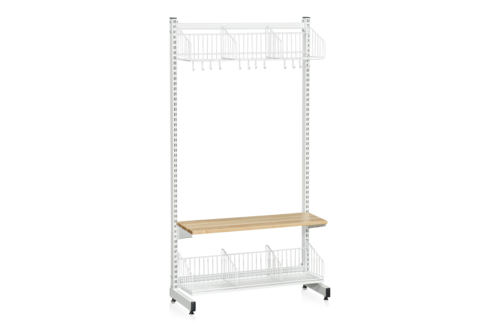L-stativ (bassektion) till vårt golvstående förvaringssystem. Komplettera med tilläggssektioner, olika typer av hyllplan, perforerade paneler och krokar för att skapa en funktionell förvaringslösning för alla typer av miljöer, exempelvis kapprum.