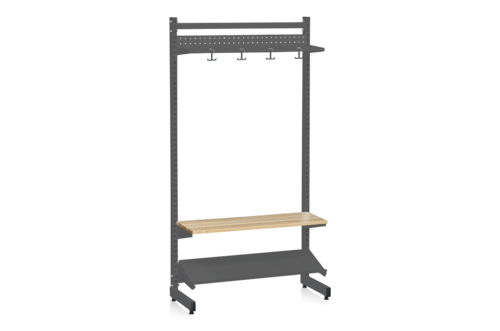 L-stativ (bassektion) till vårt golvstående förvaringssystem. Komplettera med tilläggssektioner, olika typer av hyllplan, perforerade paneler och krokar för att skapa en funktionell förvaringslösning för alla typer av miljöer, exempelvis kapprum.