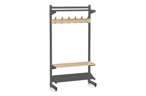 L-stativ (bassektion) till vårt golvstående förvaringssystem. Komplettera med tilläggssektioner, olika typer av hyllplan, perforerade paneler och krokar för att skapa en funktionell förvaringslösning för alla typer av miljöer, exempelvis kapprum.