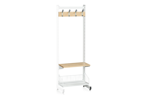 L-stativ (tilläggssektion) till vårt golvstående förvaringssystem. Byggs ihop med bassektion. Komplettera med fler sektioner, olika typer av hyllplan, perforerade paneler och krokar för att skapa en funktionell förvaringslösning för alla typer av miljöer, exempelvis kapprum.