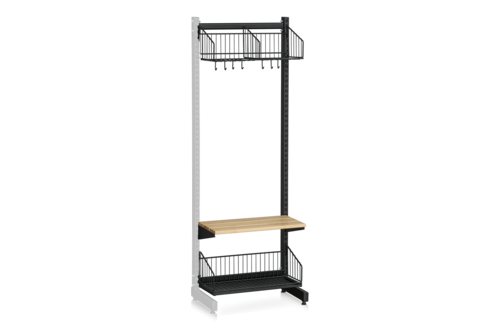 L-stativ (tilläggssektion) till vårt golvstående förvaringssystem. Byggs ihop med bassektion. Komplettera med fler sektioner, olika typer av hyllplan, perforerade paneler och krokar för att skapa en funktionell förvaringslösning för alla typer av miljöer, exempelvis kapprum.