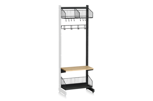 L-stativ (tilläggssektion) till vårt golvstående förvaringssystem. Byggs ihop med bassektion. Komplettera med fler sektioner, olika typer av hyllplan, perforerade paneler och krokar för att skapa en funktionell förvaringslösning för alla typer av miljöer, exempelvis kapprum.