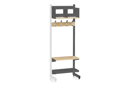 L-stativ (tilläggssektion) till vårt golvstående förvaringssystem. Byggs ihop med bassektion. Komplettera med fler sektioner, olika typer av hyllplan, perforerade paneler och krokar för att skapa en funktionell förvaringslösning för alla typer av miljöer, exempelvis kapprum.