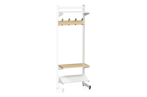 L-stativ (tilläggssektion) till vårt golvstående förvaringssystem. Byggs ihop med bassektion. Komplettera med fler sektioner, olika typer av hyllplan, perforerade paneler och krokar för att skapa en funktionell förvaringslösning för alla typer av miljöer, exempelvis kapprum.