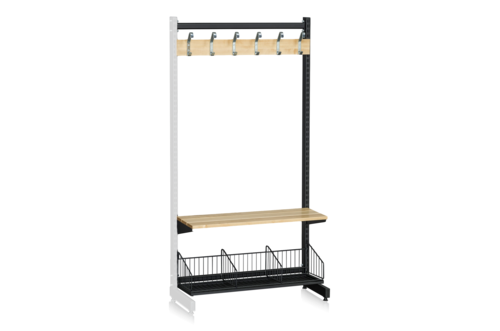 L-stativ (tilläggssektion) till vårt golvstående förvaringssystem. Byggs ihop med bassektion. Komplettera med fler sektioner, olika typer av hyllplan, perforerade paneler och krokar för att skapa en funktionell förvaringslösning för alla typer av miljöer, exempelvis kapprum.