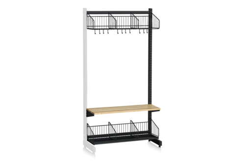 L-stativ (tilläggssektion) till vårt golvstående förvaringssystem. Byggs ihop med bassektion. Komplettera med fler sektioner, olika typer av hyllplan, perforerade paneler och krokar för att skapa en funktionell förvaringslösning för alla typer av miljöer, exempelvis kapprum.