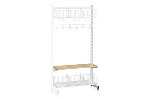 L-stativ (tilläggssektion) till vårt golvstående förvaringssystem. Byggs ihop med bassektion. Komplettera med fler sektioner, olika typer av hyllplan, perforerade paneler och krokar för att skapa en funktionell förvaringslösning för alla typer av miljöer, exempelvis kapprum.