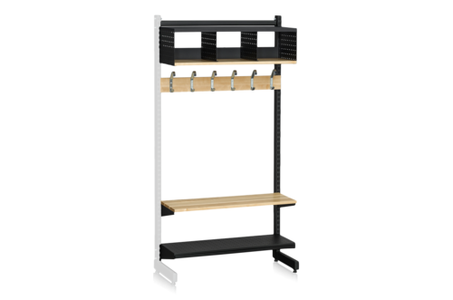 L-stativ (tilläggssektion) till vårt golvstående förvaringssystem. Byggs ihop med bassektion. Komplettera med fler sektioner, olika typer av hyllplan, perforerade paneler och krokar för att skapa en funktionell förvaringslösning för alla typer av miljöer, exempelvis kapprum.
