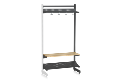 L-stativ (tilläggssektion) till vårt golvstående förvaringssystem. Byggs ihop med bassektion. Komplettera med fler sektioner, olika typer av hyllplan, perforerade paneler och krokar för att skapa en funktionell förvaringslösning för alla typer av miljöer, exempelvis kapprum.