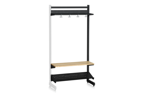 L-stativ (tilläggssektion) till vårt golvstående förvaringssystem. Byggs ihop med bassektion. Komplettera med fler sektioner, olika typer av hyllplan, perforerade paneler och krokar för att skapa en funktionell förvaringslösning för alla typer av miljöer, exempelvis kapprum.