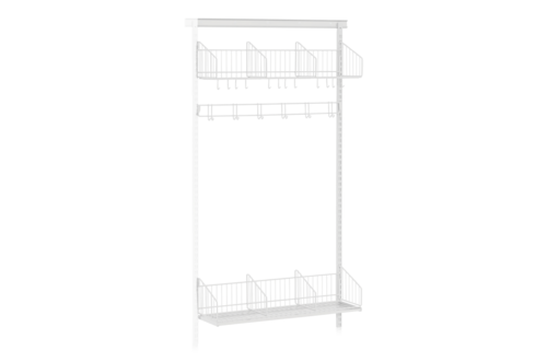 Vägghängd sko- och hatthylla inklusive klädkrokslist (tilläggssektion) för förvaring av kläder och skor. Hyllan går att bygga ut med fler sektioner till ett helt hyllsystem som både har stort förvaringsutrymme och är platsbesparande. Perfekt för att skapa funktionella förvaringslösningar för exempelvis kapprum. Sko- och hatthyllan har tre fack vardera och en dropplåt som samlar upp smuts.