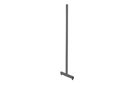 Bygg ett skräddarsytt och fristående golvställ med våra t-stativ! Använd två eller flera t-stativ och komplettera med hyllor samt upphängningsskenor för att skapa ett system anpassat efter er arbetsplats. T-stativet består av perforerad rörprofil (50x25 mm) i lackerad stål som är perforerad på båda sidor, vilket gör det möjligt att skapa en dubbelsidig förvaringslösning. Stativet har även ställbar fot som bidrar till att det står stadigt på ojämna underlag.