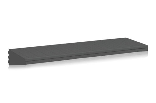 Perforerad skohylla med dropplåt som passar våra vägghängda och fristående hyllsystem. Enkel att höjdjustera. Dropplåten samlar upp grus och smuts.